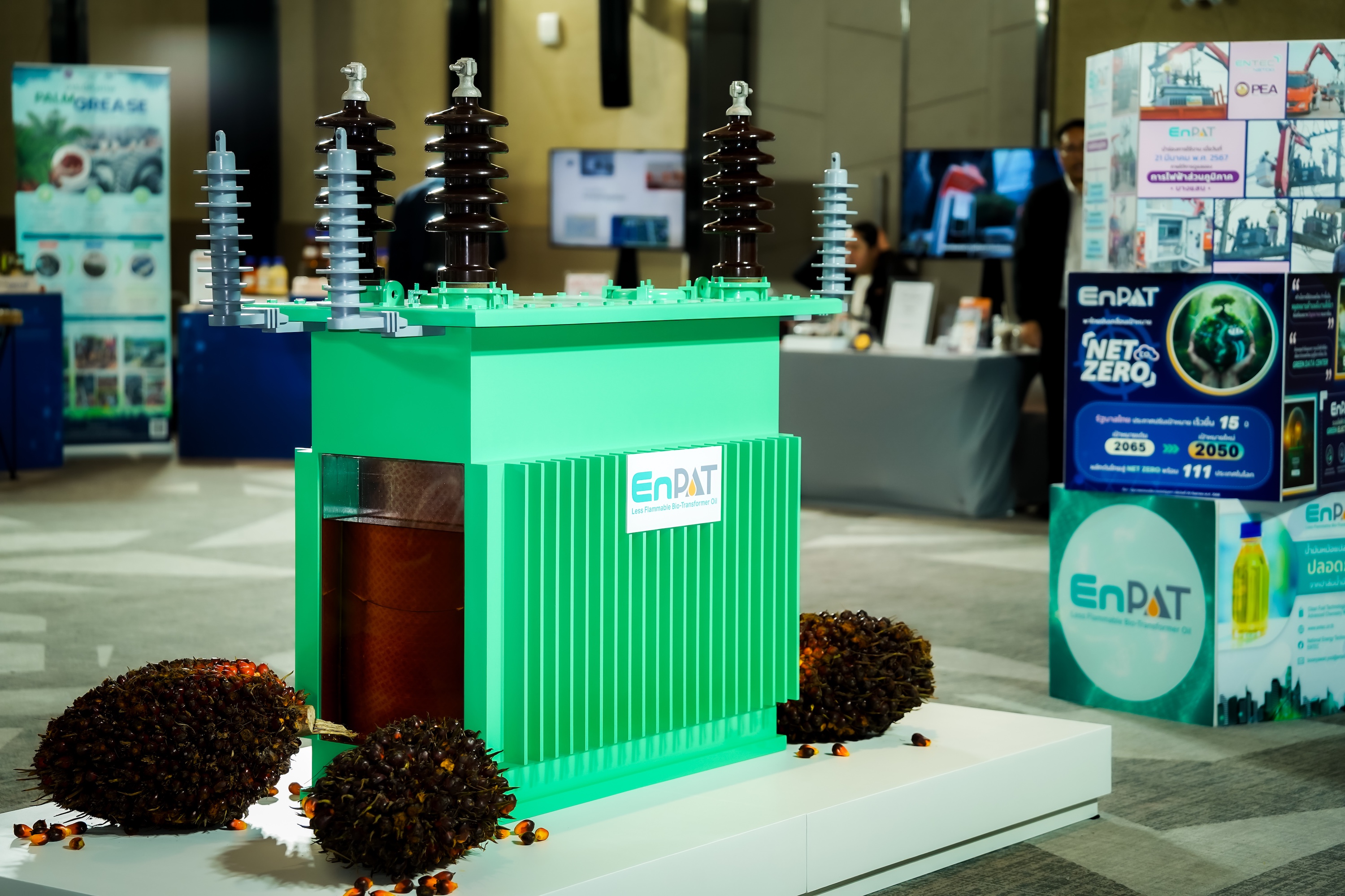 อุตสาหกรรมน้ำมันหม้อแปลงไฟฟ้ากำลังเปลี่ยนผ่านสู่การให้ความสำคัญด้านความปลอดภัย สิ่งแวดล้อม และการลดคาร์บอน เพื่อตอบโจทย์โครงสร้างพื้นฐานพลังงานยุคใหม่ PSP พัฒนาน้ำมันหม้อแปลงไฟฟ้าชีวภาพ “EnPAT” ที่เป็นชีวภาพ ติดไฟยาก และลดการปล่อยก๊าซเรือนกระจกตลอดวงจรชีวิตผลิตภัณฑ์ โดยร่วมมือกับการไฟฟ้านครหลวงและการไฟฟ้าส่วนภูมิภาคในการทดสอบใช้งานจริง เพื่อสร้างความเชื่อมั่นและรองรับการจัดทำมาตรฐานในอนาคต EnPAT ผลิตจากน้ำมันปาล์มไทย ช่วยลดการนำเข้า เสริมความมั่นคงด้านพลังงาน และเพิ่มมูลค่าให้วัตถุดิบการเกษตร อีกทั้งสามารถนำไปต่อยอดตามแนวคิดเศรษฐกิจหมุนเวียน โดยน้ำมันใช้แล้วสามารถนำไปผลิตไบโอดีเซลได้มากกว่า 97% ในระยะแรก PSP ตั้งเป้าผลิตเพื่อทดแทนน้ำมันหม้อแปลงน้ำแร่ราว 5% ของตลาดในประเทศ ก่อนขยายสู่ตลาดต่างประเทศ เพื่อผลักดันระบบไฟฟ้าไทยสู่ความยั่งยืนในระยะยาว